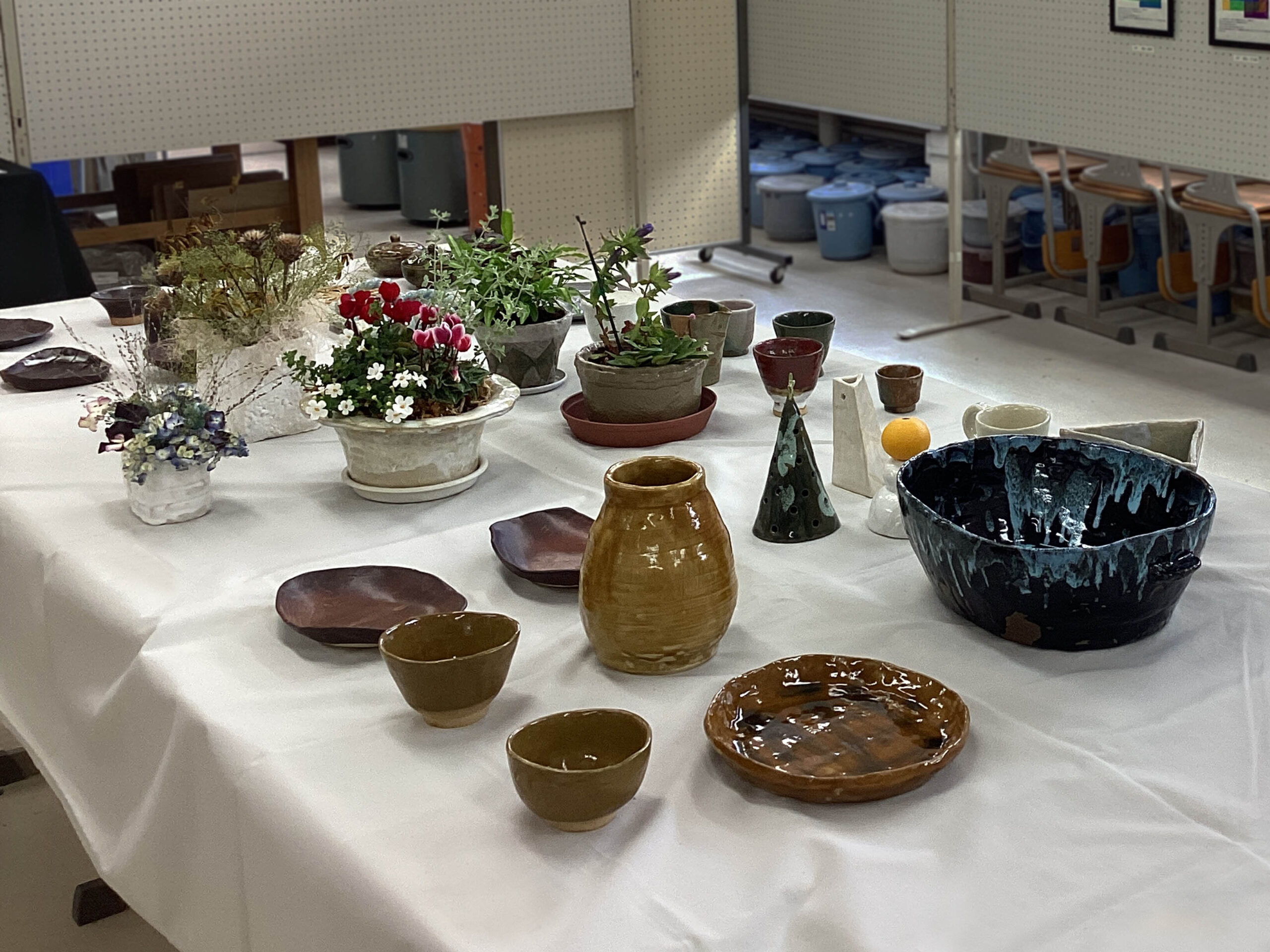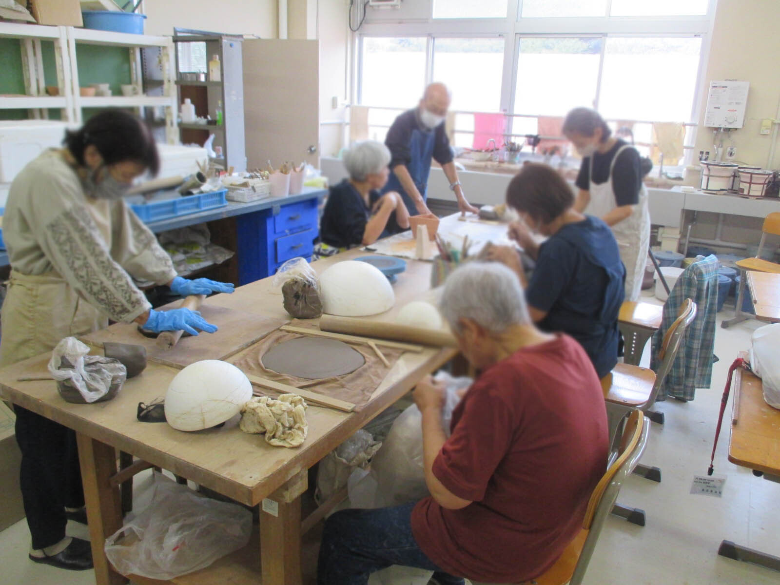 陶芸入門講座の制作の様子。皆さんそれぞれの作品を楽しく制作されています。